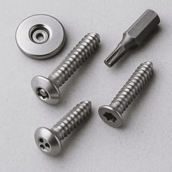 Оснащаются специальными головками под уникальный инструмент. Часто применяются в уличных конструкциях и на спортивных объектах.