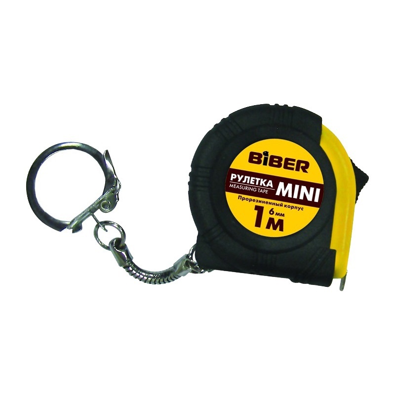 Описание и особенности: Рулетка БИБЕР МИНИ своими небольшими размерами может использоваться в качестве брилка на ключи. Размеры ленты: 1 мx6 мм. Вес: 0.0285 кг.