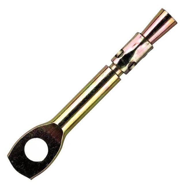 Описание и особенности: Анкер изготовлен из желтопассивированного стального сплава. Деталь имеет специальное отверстие для крепления, визуально выглядит как стержень с цилиндрически подвижной муфтой. Анкер предназначен для работы с такими материалами как камень или бетон. Устанавливается потолочный анкер с ушком забиванием анкера молотком в отверстие и расклиниванием при обратной теге. Расклинивание происходит за счет распорного элемента.