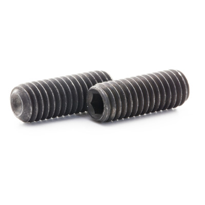 Установочный винт DIN 916 представляет собой резьбовой крепеж, выполненный в форме шпильки. На одном его торце расположено шестигранное углубление для имбусового ключа (HEX), а на другом — засверленное коническое углубление. Этот тип крепежа используется для надежной фиксации одной детали относительно другой. Например, он применяется для крепления шестерни на валу, предотвращая её осевое смещение. Прочное стопорение достигается за счет плотной затяжки винта и специальной формы его конца, который имеет внутренний (вогнутый) конус. Этот конус вдавливается в металл основания, обеспечивая надежную фиксацию на дне глухого отверстия.
