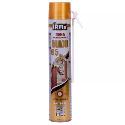 Благодаря использованию нового поколения компонентов и высокой расширяемости, высококачественная однокомпонентная полиуретановая монтажная пена IRFix МАХI 65 обладает значительной производительностью. Для выпуска пены из баллона не требуется дополнительных приспособлений. В процессе затвердевания монтажная пена значительно увеличивается в объёме, что позволяет заполнить любые пустоты. Продукт полностью готов к применению.