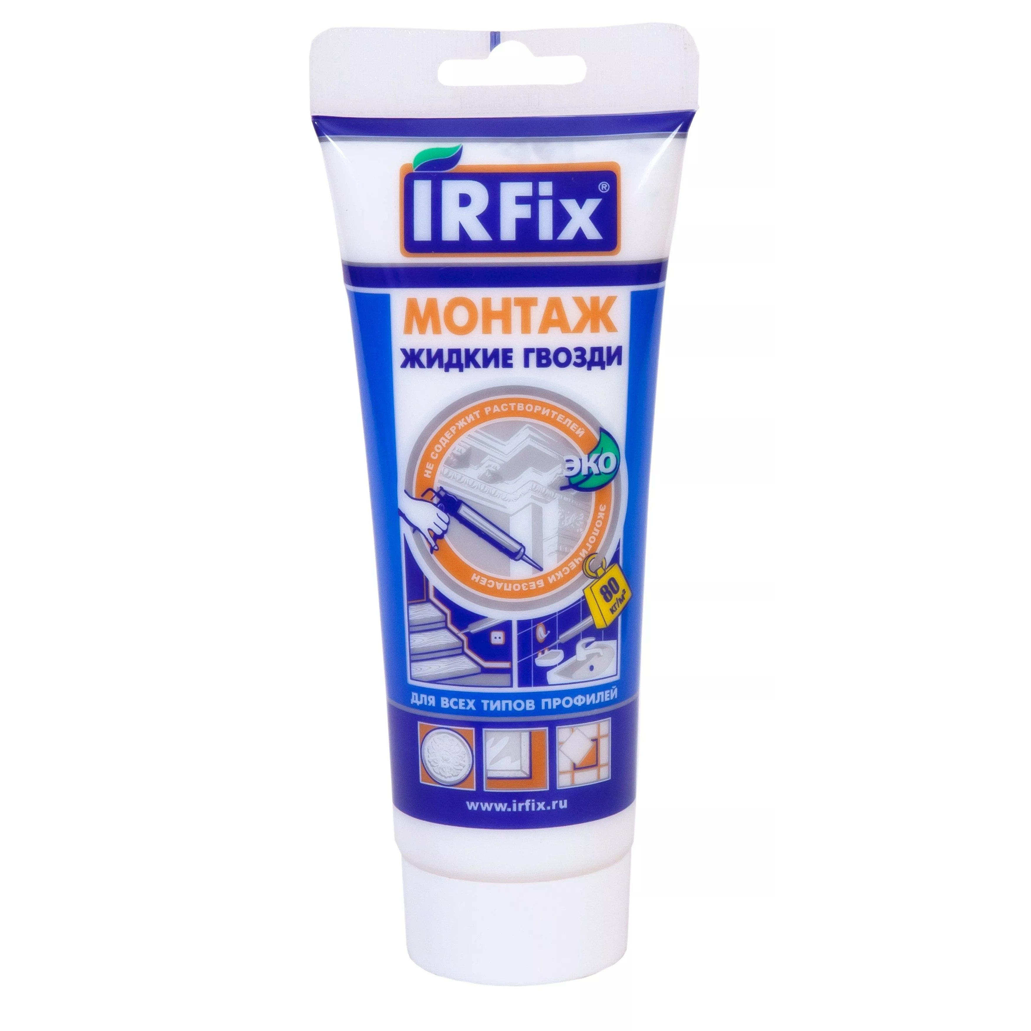 Жидкие гвозди IRFix МОНТАЖ предназначены для работы с любыми видами декоративных изделий из полиуретана, полистирола (в том числе для приклеивания белых потолочных плиток), камня, кафеля, гипса, дерева эксплуатируемых во влажных и сухих помещениях. Время недопустимого контакта с водой после нанесения клея - 24 часа. После высыхания поверхность можно окрашивать.
