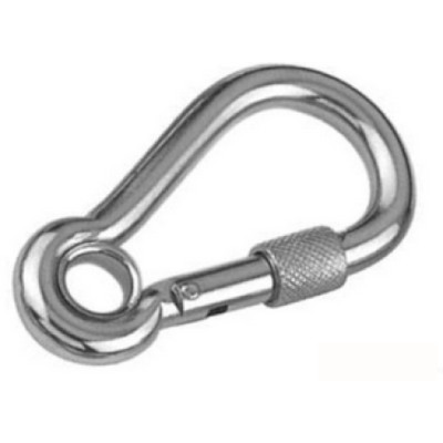 Пружинный карабин с резьбовой втулкой и кольцом ART 8232 предназначен для быстрого и надежного соединения стальных тросов, цепей и веревок как между собой, так и с различными поверхностями. Он также используется для подвешивания и крепления предметов в быту, строительстве и на судах. Замкнутое стальное кольцо, установленное в малом ушке, защищает карабин от износа и предотвращает перекручивание страховочной петли. Размер карабина с фиксатором определяется исходя из диаметра поперечного сечения проволоки или прутка, а также длины самого карабина.