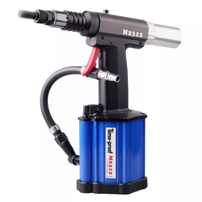 Заклепочник Time-proof M2312 для резьбовых (гаечных) заклепок — это индустриальный инструмент, который подходит для больших объемов работ. Он работает с заклепками разных размеров: от М3 до М12, сделанными из алюминия, стали и нержавеющей стали. При этом весит всего 1,7 кг. Этот заклепочник станет незаменимым помощником на производствах, где используют широкий спектр размеров заклепок.